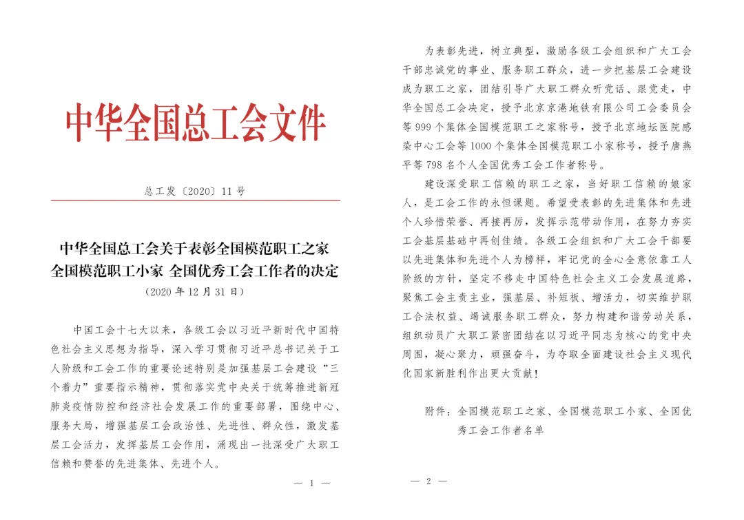 ?喜報(bào)!公司工會(huì)榮獲“全國模范職工之家”榮譽(yù)稱號(hào)