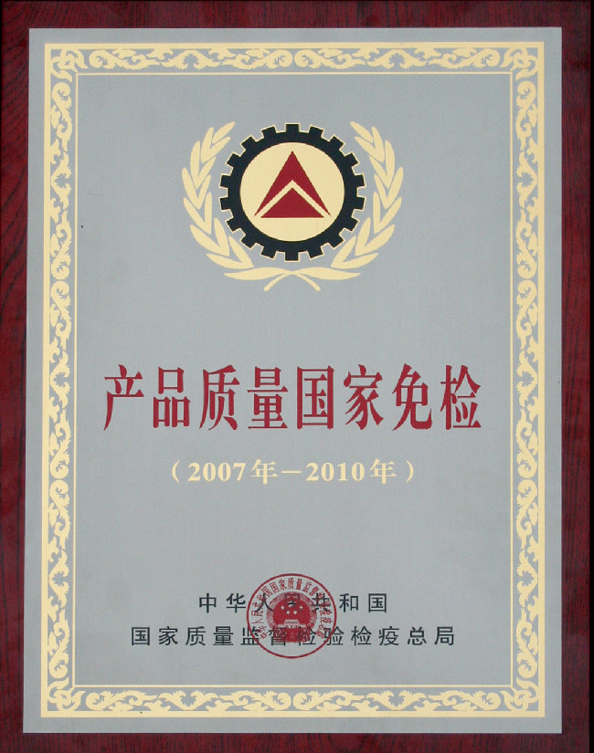 2007年-2010年產品質量國家免檢